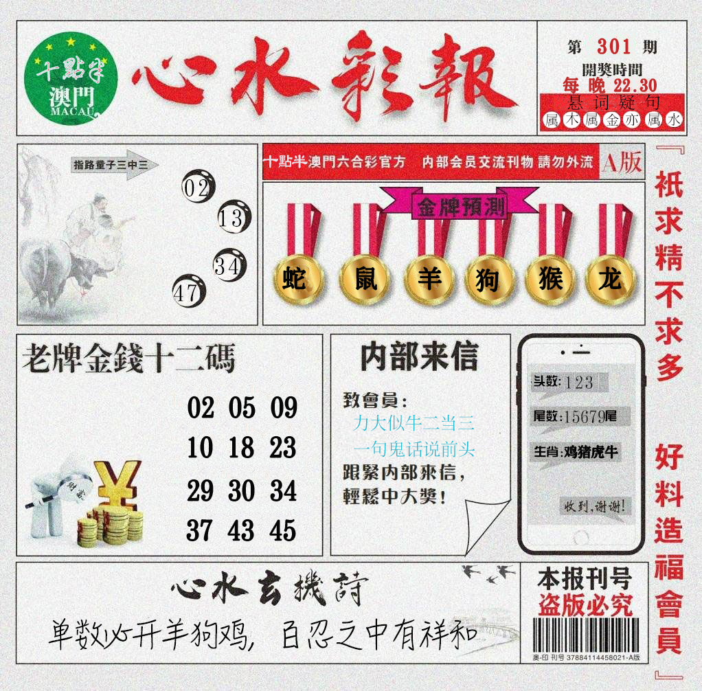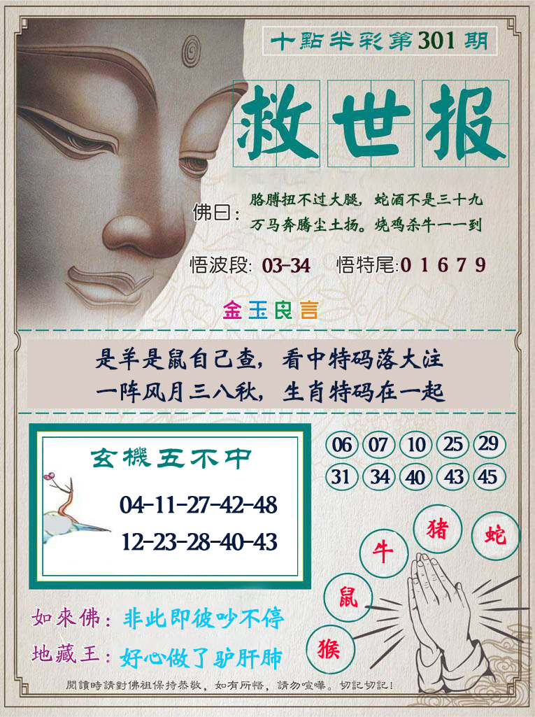 | 必中五肖:鸡兔牛猴蛇 | |
