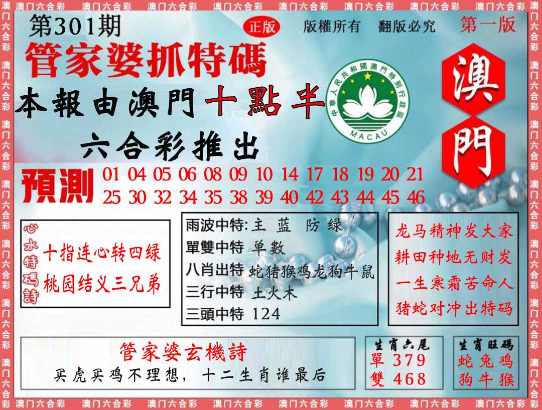 | 必中六肖:牛马猴鸡蛇狗 | |