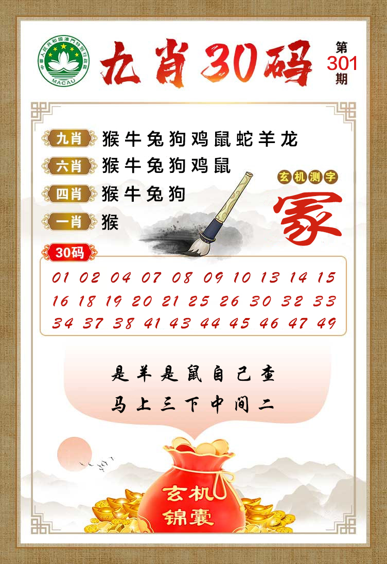 | 必中四肖:牛猴羊狗 | |